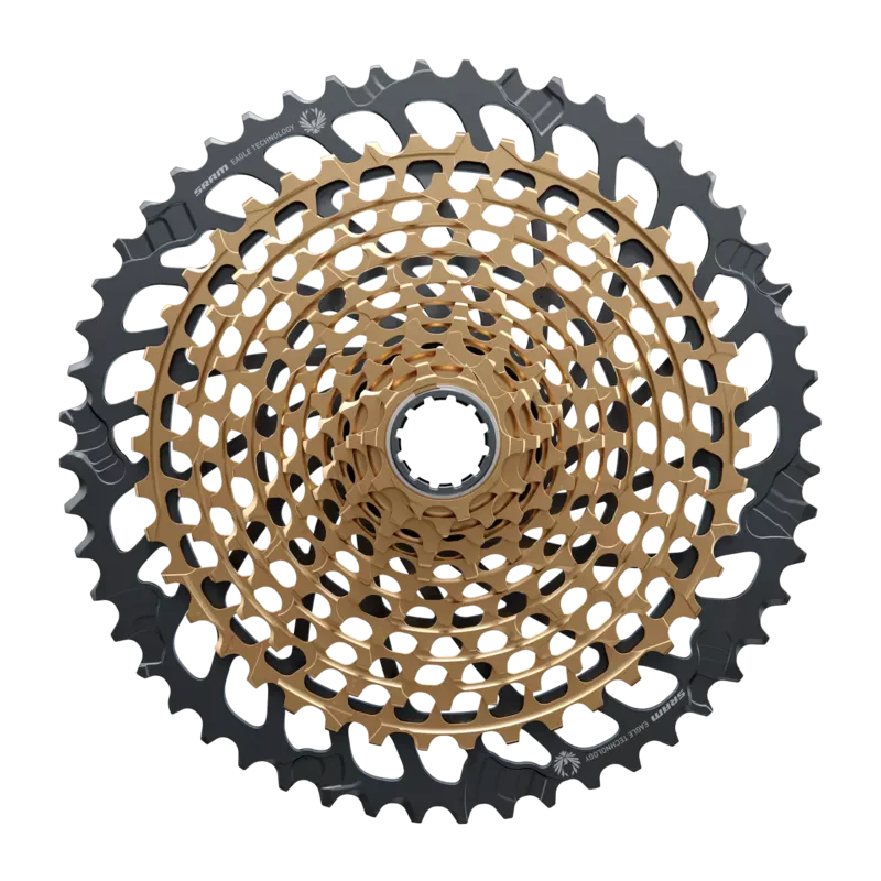 Whether for prized race machines or the build of their dreams, the XG-1299 cassette is the ultimate, giving riders unprecedented 520-percent range thanks to the new 10-52 tooth-span. Stronger racers are now free to choose larger chainrings for more top-end speed, without sacrificing climbing range. More time is spent higher up in the cassette where athletes power transfer is most efficient and wear is minimized. Featuring the industry’s strongest X-Dome™ architecture and proven XD™ driver body, it’s also backwards compatible to give riders even more Eagle™ upgrade options for their current bikes. With multiple Olympic, World Cup and World Championship titles, it also matches up perfectly to XX1 Eagle AXS™ enabled componentry. The XG-1299 cassette utilizes the full depth of the new Eagle™ Colorsystem. Available in Black to Gold to Rainbow and all-new Copper, the XG-1299 cassette completes the expression of the worlds most accomplished and sought after bikes.